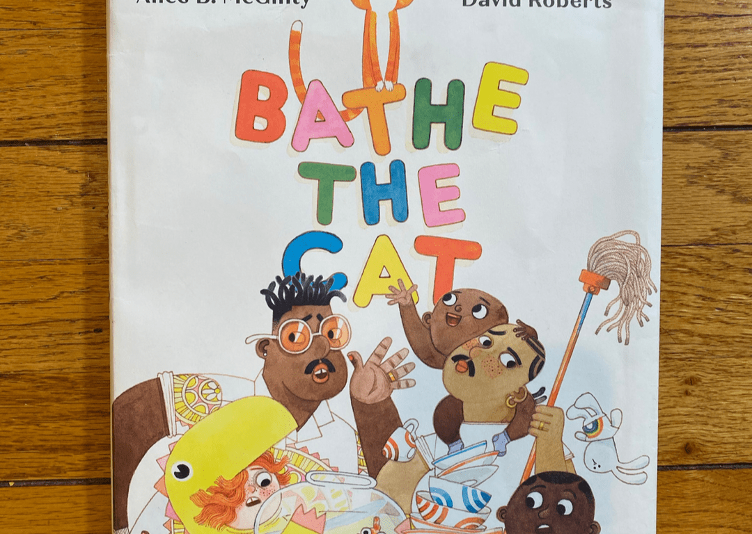 Bathe the Cat is an absolute treasure of a book. It follows a family of two dads, their three kids, and a very mischievous cat, who does NOT want to take a bath. The family is trying to tidy up before Grandma visits, but whenever Daddy gets organized and assigns the cleaning tasks to everyone, the cat sneakily sabotages his plans and total chaos ensues. The illustrations by David Roberts, who is known for illustrating the Questioneer series (Rosie Revere, Iggy Peck, Ada Twist, etc.), are perfectly expressive and detailed. They add so much character and physical comedy to an already fun story.
